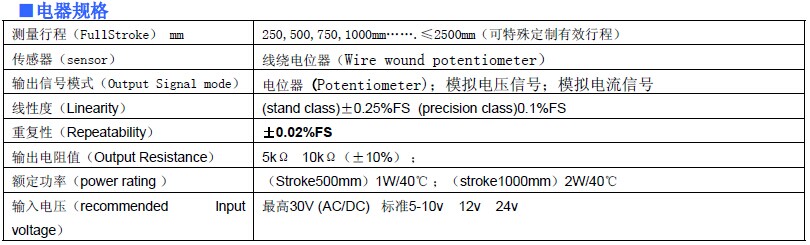 精密電阻信號(hào)輸出; 適用于測(cè)量范圍0-2500mm;